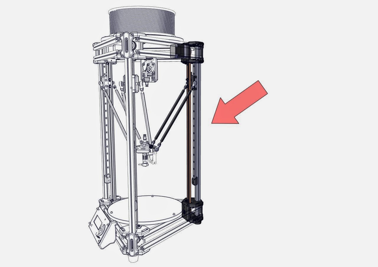 本家Kosselで採用されているリニアガイドですが、そこから派生しているいくつかのKossel系3Dプリンタではリニアガイドは使わずアルミフレームとカムフォロア(ベアリング)を使った独自のガイド方式を採用しています。